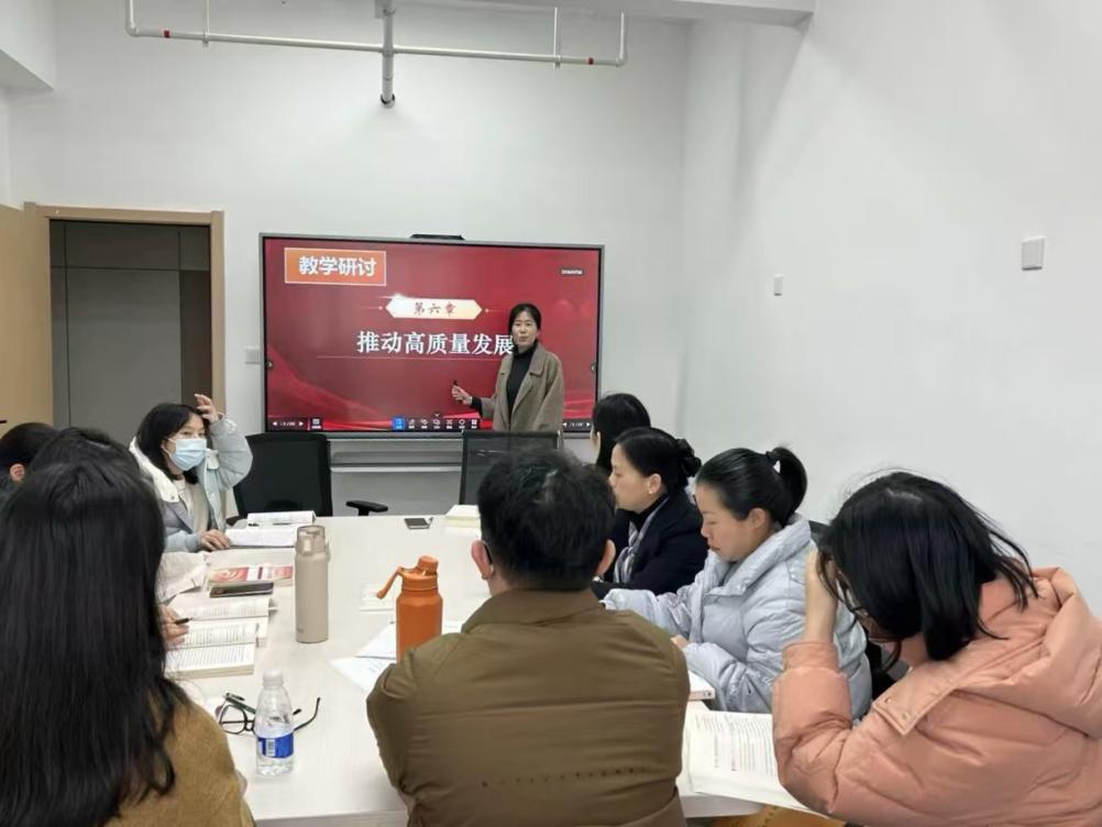 为更好地组织“习近平新时代中国特色社会主义思想概论”课程教学,推动习近平新时代中国特色社会主义思想进教材、进课堂、进头脑,近日,马克思主义学院习近平新时代中国特色社会主义思想概论教研室开展了本学期思政课教师“大练兵”暨“优·美”教学工作坊集体备课活动。此次备课会聚焦于全面深化改革开放和推动高质量发展两大主题,旨在深化教师对习近平新时代中国特色社会主义思想的理解,并将党的最新理论成果融入教学实践中,以提高教学质量,培养担当民族复兴大任的时代新人。