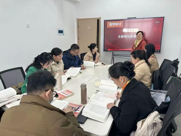 备课会由黄晋京老师主讲第五章“全面深化改革开放”,洪凌艳老师主讲第六章“推动高质量发展”。两位老师分别就各自负责的章节内容进行了深入的解读和研讨。