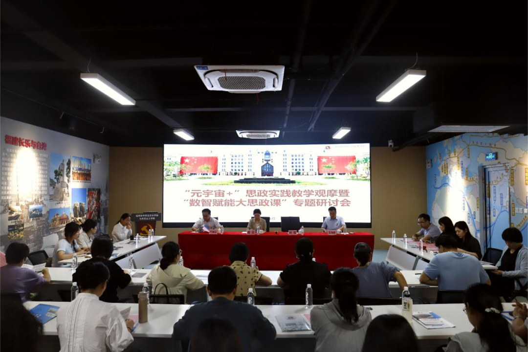 黄奕院长一行参观了“元宇宙+”思政育人创新实践基地,先后体验了基地内互动工坊、元宇宙沉浸式教室等核心功能区,通过AR智能眼镜、移动滑轨屏等设备感受“数智赋能大思政课”成果。期间,福州软件职业技术学院马克思主义学院组织开展“数智赋能大思政课”专题研讨会。