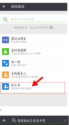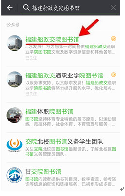 第一步关注服务号公众号:打开微信→添加朋友→公众号输入福建船政交院图书馆或扫描二维码添加