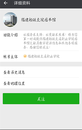 欢迎使用福建船政交院图书馆微信公众平台服务号