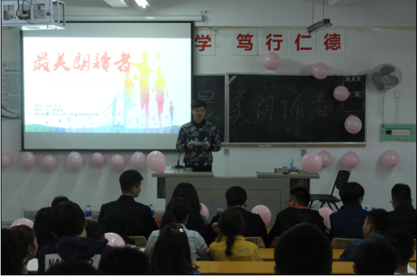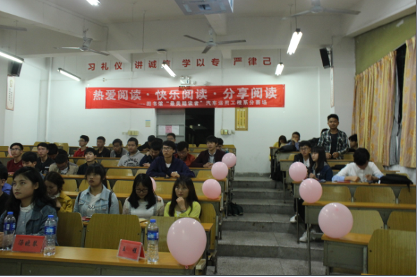 活动在各班级如火如荼的开展,旨在让全系同学分享了自己在阅读中的种种收获,为同学们营造出温馨的读书氛围,感受读书的惬意。各班同学们还纷纷在“享读书之乐,浴书香之馨”的现场横幅上签下自己的名字,倡议大家“好读书 勤读书 荐好书”。经过各支部推荐选拔,4月11日在北区22号楼汽一阶教室举办此次活动的决赛,活动特邀图书馆学生馆员联合会代表和我系学生会主席团与各部门长参与评选,同学不仅纷纷踊跃推荐自己心目中的好书,还让同学们分享了自己在阅读中的心得与体会,展示了礼仪、汽车营销等阅读、学习成果。