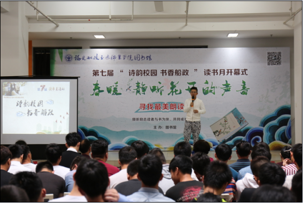 4月26日下午,我院隆重举行“寻找最美朗读者”活动决赛暨“诗韵校园 书香船政”图书馆第七届读书月系列活动开幕式。学院陈艳红副院长、相关职能部门负责人、各系部党总支书记及优秀校友福建电视台著名主持人陈朱海应邀参加了开幕活动。