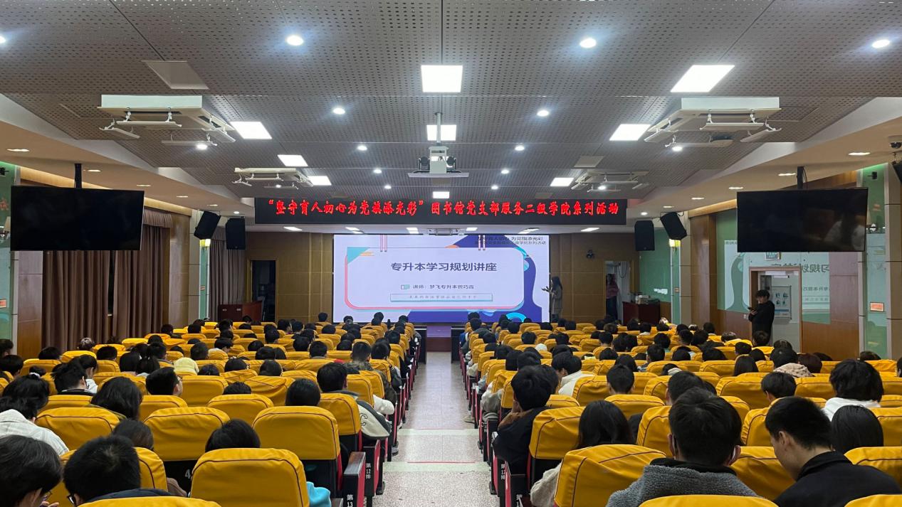 耕耘更知韶光贵,不待扬鞭自奔蹄,图书馆秉持全心全意为学生服务的理念,为加强对学生职业生涯规划的指导,帮助同学们了解专升本途径,挖掘自身潜能,及时把握学历提升机会。12月27日在行政楼6楼学术报告厅,图书馆党支部开展服务二级学院系列活动——举办“专升本学习规划”专题讲座。邀请梦飞教育集团讲师、专升本政策规划师蔡巧霞老师为同学们作专升本政策解读与报考指导,340名同学聆听了讲座。