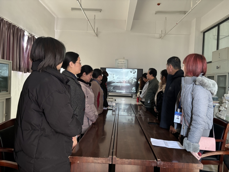 2023年12月13日为第十个南京大屠杀死难者国家公祭日,八十六载光阴可以抚平伤疤,但无法抹去民族的屈辱,国殇已深刻于亿万国人之骨髓。为深切缅怀遇难同胞,激励党员牢记历史、自强不息,图书馆党支部在图书馆党员活动室开展“昭昭前事铭国殇 吾辈自强聚党心”的主题党日活动。本次活动由图书馆党支部书记陈林同志主持,支部全体党员参加活动。