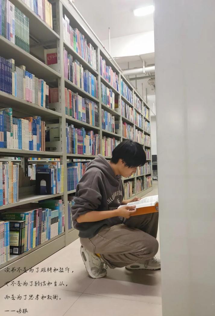 在偌大的图书馆寻找一个角落,拍下那一瞬间。