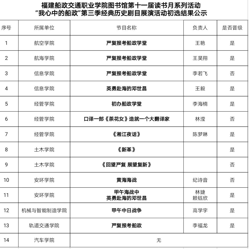 经过全校学生的积极参与,各二级学院的评比选送,最终13个剧目进入此次活动的初赛。现将初选结果公示如下
