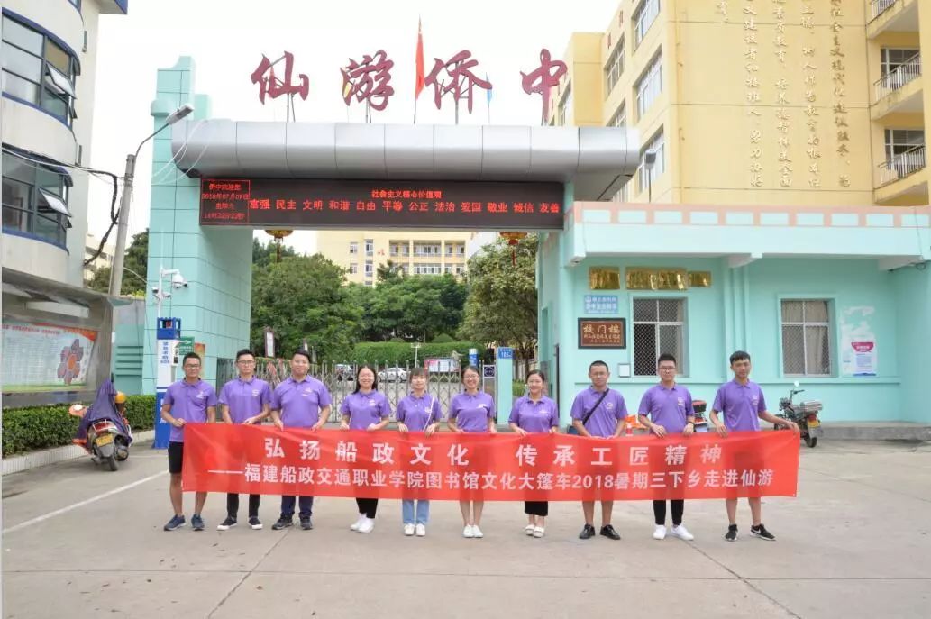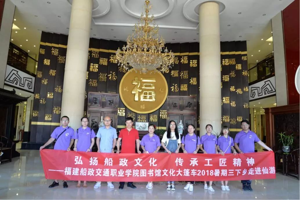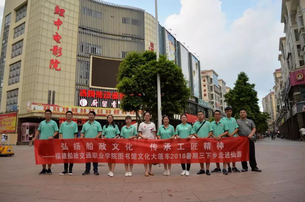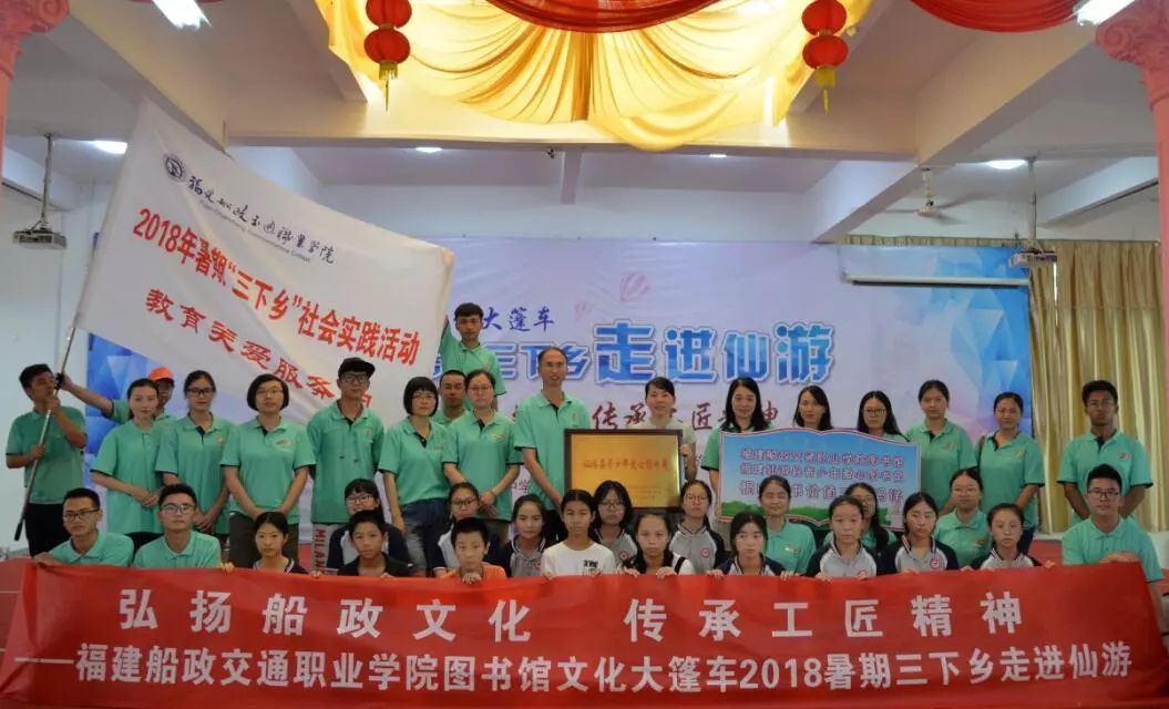 福建船政交通职业学院图书馆文化大篷车充分利用图书馆资源优势,以传承船政文化为己任,弘扬船政学堂的职业教育理念,精益求精,密益求密,积极开展职业教育志愿服务活动,打造有船政文化特色的校园文化品牌,为广大市民服务,让广大市民知道船政、了解船政、走进船政。 2018年7月6日-7月10日,图书馆依托 “文化大篷车”项目,组成教育关爱服务团“三下乡”服务队,带着我院师生的爱心,将满满的暖意传递到仙游县市民中。
