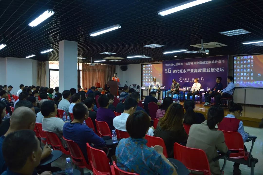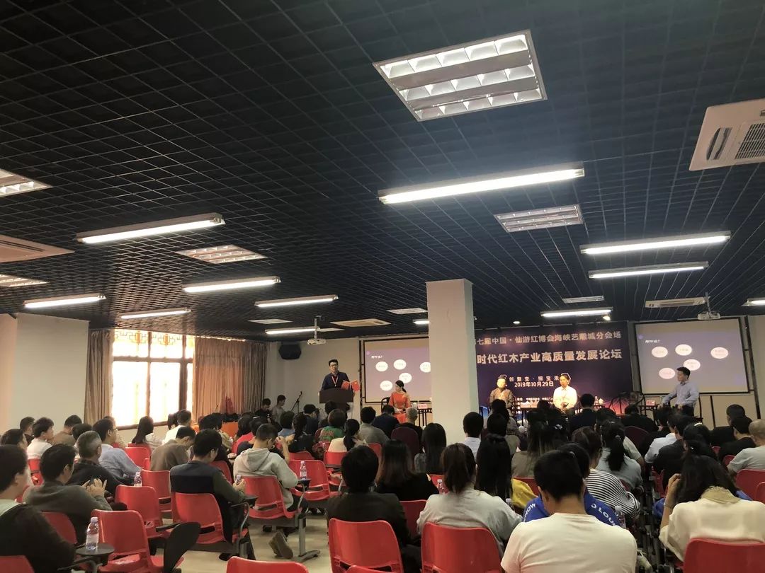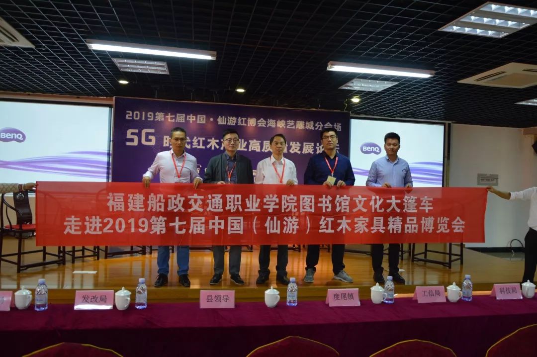 10月29日上午,2019第七届中国(仙游)红木家具精品博览会海峡艺雕城分会场“智创聚变·探宝未来 —— 5G时代红木产业高质量发展论坛峰会高质量发展论坛,在莆田仙游度尾海峡艺雕旅游城召开,我院图书馆文化大篷车特邀专家福建师范大学教授韦樟清、蓝泰华,福建船政交通职业学院副教授陈乐天、吴章光走进该论坛。几位专家在论坛中,深入探讨5G时代下红木产业的转型升级发展。百余位红木及电商从业人士共同参会。