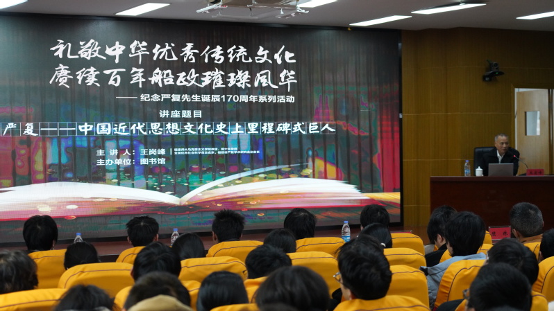 在纪念严复先生诞辰170周年这个特殊的日子,在实现中华民族伟大复兴中国梦的征程中,学院缅怀贤哲,分别于1月5日和1月8日开展专题读书会---共读《严复传》和专题讲座:《严复——中国近代思想文化史上里程碑式巨人》,弘扬严复的爱国主义精神,改革创新思想等,引导船政青年从严复传记和严复精神中汲取奋勇前行的力量,站在新的历史起点上,在“仍不过时”的思想照耀下逐梦前行。