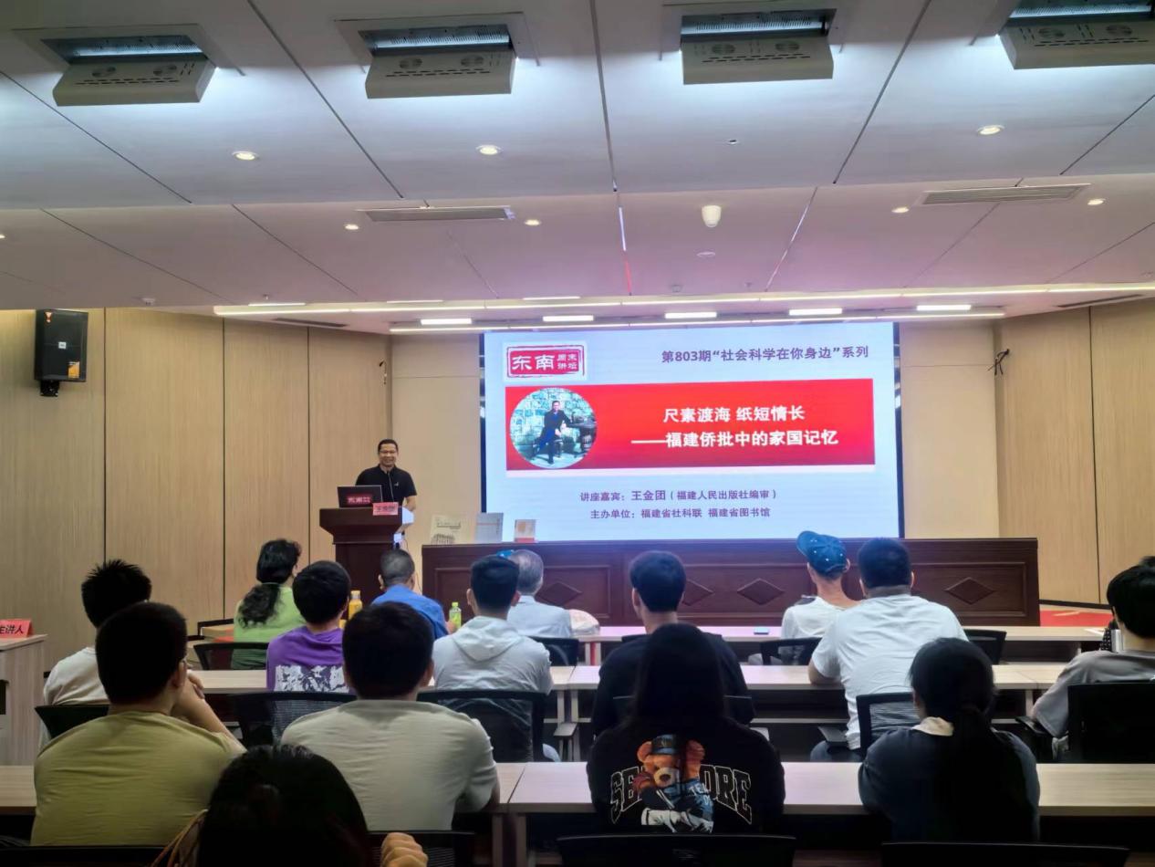 6月15日,学生志愿者们走进福建省图书馆为“东南周末讲坛”活动提供文化志愿服务,协助讲座现场活动的接待、引宾、发放宣传资料、填写调查问卷、整理桌椅等,并观摩了福建人民出版社总编室主任兼审读室主任、编审王金团作题为《尺素渡海 纸短情长——福建侨批中的家国记忆》的学术讲座,讲座最后主讲人与读者们展开了热烈的交流讨论。通过深入解读,让学生了解什么是侨批,侨批产生的背景与条件,侨批业从兴盛到衰落的发展过程,特别是福建侨批所蕴含的家国情怀与桑梓情意,以及侨批所蕴含的深厚历史文化价值。