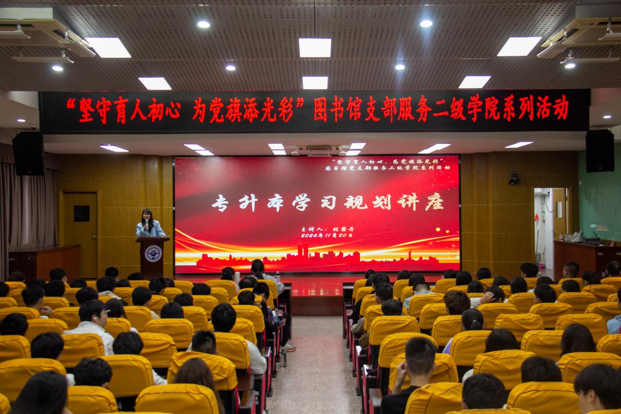 为引导学生做好未来的学习规划,帮助学生能够及时了解专升本考试的相关政策知识,11月20日晚7时在行政楼6楼学术厅,图书馆党支部开展服务二级学院系列活动——举办“专升本学习规划”专题讲座。邀请专升本政策规划师刘露丹为同学们作专升本政策解读与报考指导,2024级300名同学聆听了讲座。