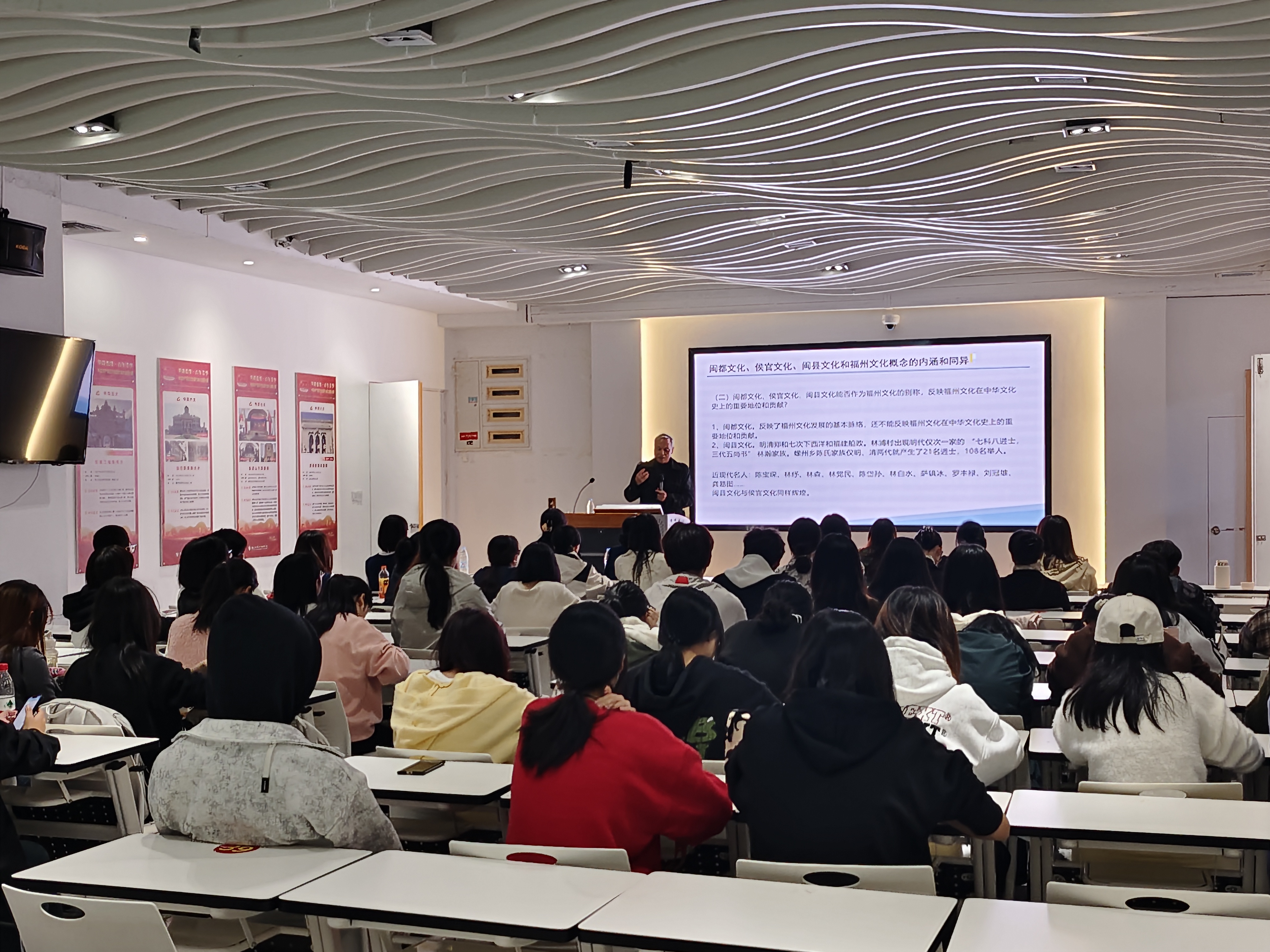 讲座由福建师范大学马克思主义学院博士生导师王岗峰教授主讲。其内容围绕着闽都文化、侯官文化、闽县文化和福州文化概念的内涵和同异;严复为核心的福州学派——“侯官新学”;研究侯官文化的重要意义等方面展开。王教授详细阐述了严复思想在侯官文化中的灵魂地位。