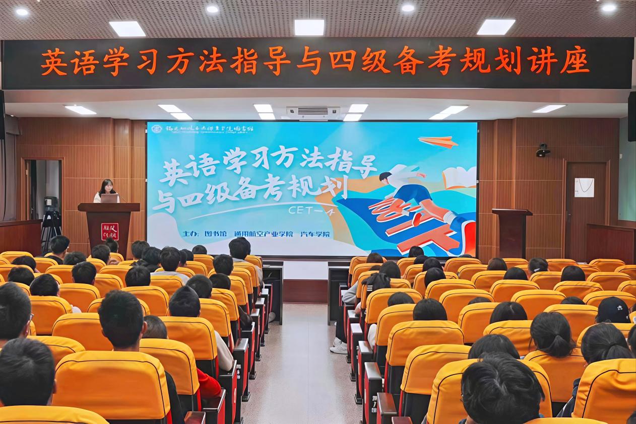 近日,图书馆联合通用航空产业学院、汽车学院在1号楼学术报告厅举办《英语学习方法指导和四级备考规划》专题讲座,300余名大一新生现场聆听,共同解锁英语高效学习密码。