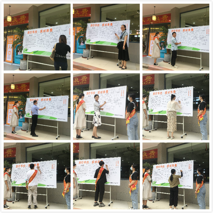 通过此次厉行勤俭节约,反对餐饮浪费的活动,学生们纷纷在“厉行节约,反对浪费”签名墙上写下自己的承诺: