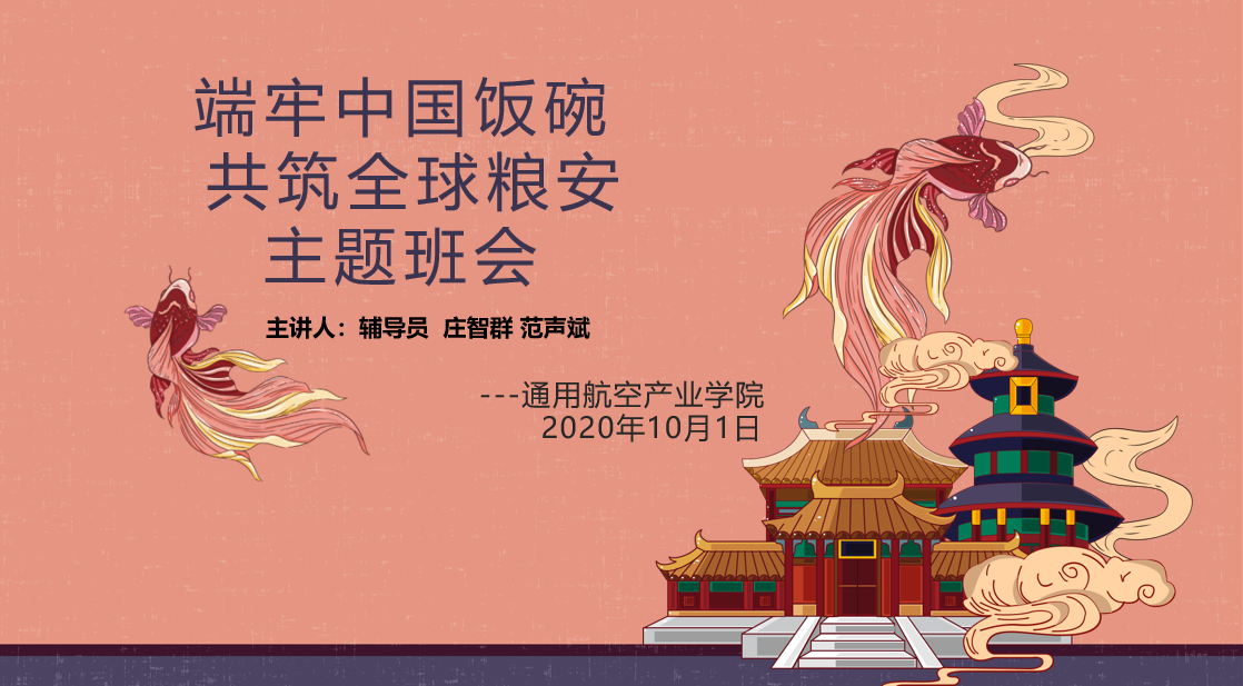 2020年10月16日是第40个世界粮食日,为了做好粮食安全宣传工作,通用航空产业学院开展以“端牢中国饭碗,共筑全球粮安”系列宣传活动, 活动包括: “端牢中国饭碗,共筑全球粮安”主题班会、主题黑板报评比、“端牢中国饭碗,共筑全球粮安”承诺签名、对学生发放粮食安全宣传单。