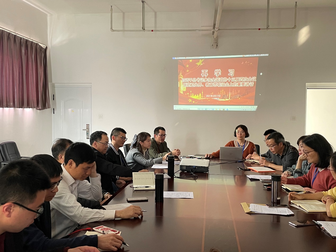 学习会紧扣“把保障人民健康放在优先发展的战略位置着力构建优质均衡的基本公共教育服务体系”主题,从“高质量教育体系”“立德树人”“国之大计、党之大计”“为党育人、为国育才”等关键词,与会人员认真学习了习近平总书记在看望参加全国政协会议的医药卫生界教育界委员时的讲话精神。
