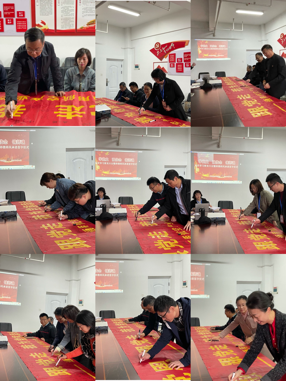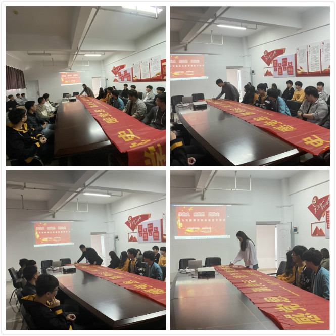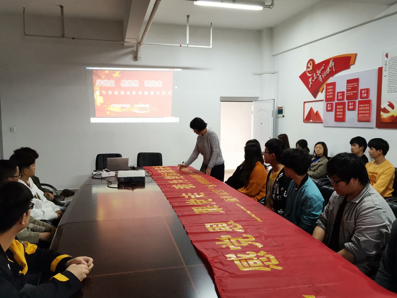 所有党员和学生代表依次在“学党史、感恩党、跟党走,我为党旗添光彩”的横幅上一一签名,许下承诺,用实际行动践行初心使命。