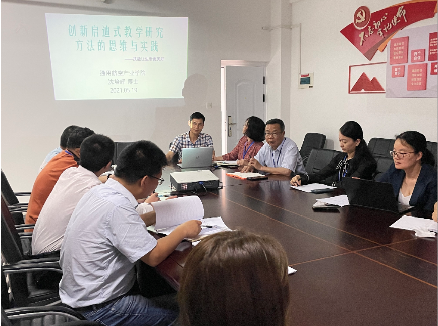 为庆祝中国共产党建党100周年,传播科学思想、倡导科学方法、弘扬科学精神,加强科普与科技服务意识,积极推进科技创新与科学普及活动协调发展,展现百年船政时代风采,通用航空产业学院第二党支部积极响应号召,支部书记沈培辉教授于2021年5月19日在会议室为师生主讲了“学党史 话科技 强信念”基于创新思维的启迪式教学方法研究专题讲座。