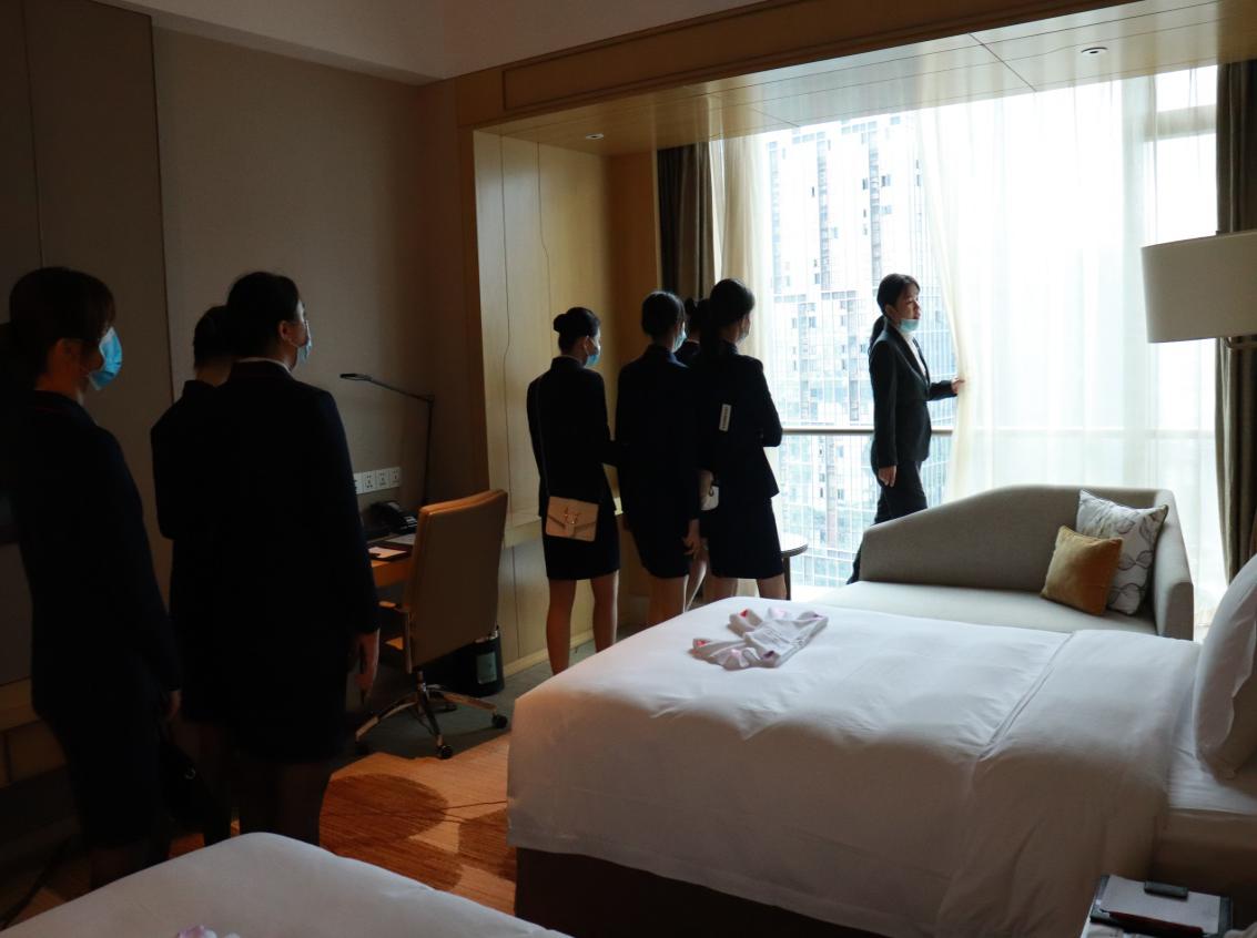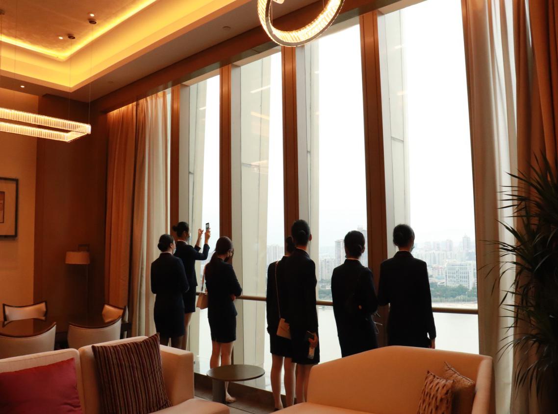 2020年10月21日下午,在辅导员范声斌老师带领下,2019级空乘1班共47名学生到达福州融侨皇冠假日酒店进行课程实践参观。