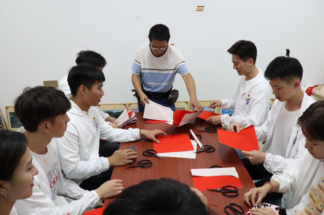 林老师为队员们分发了纸张和剪刀,队员们都动起手来,剪出属于自己的窗花。