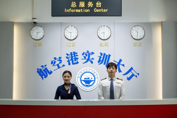 “空中乘务”实训中心,按照民航总局四级乘务员教学培训标准,建设有模拟客舱、撤离平台、机场地面服务、形体训练室等。