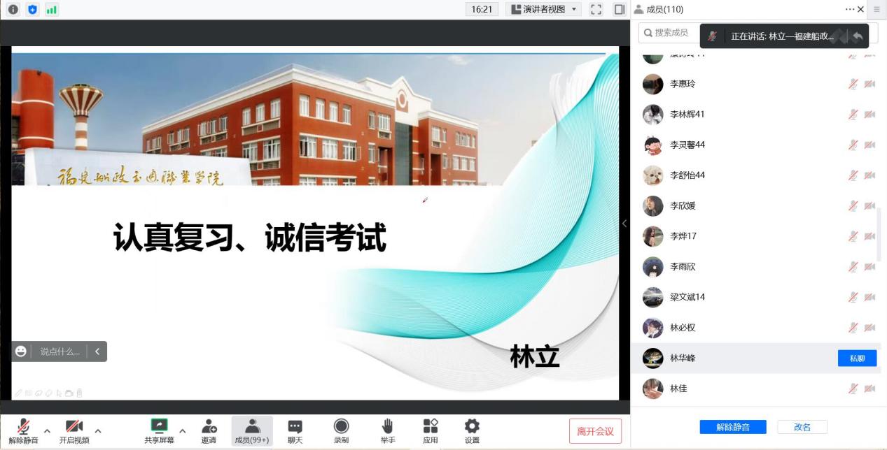 同时,各班还自行组织考试诚信教育主题班会。老师带领全体同学认真学习了学校关于学生考试纪律和违纪认定处理办法、大学生违纪处分规定等内容,并通报了以往因考试作弊受到处分的案例、讲清楚严重后果。帮助同学们从思想上认识到诚信考试的重要性和必要性,希望大家能够严格遵守考试纪律,诚信考试,依靠自己的努力学习取得优异成绩。