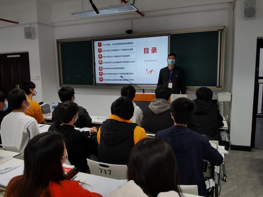 课上,沈培辉书记对党的二十大精神进行了深入解读。他强调,学习宣传贯彻党的二十大精神是当前和今后一个时期的首要政治任务,要深刻理解党的二十大主题、过去5年工作和新时代10年伟大变革的重大意义、马克思主义中国化时代化新境界的丰富内涵,系统把握以中国式现代化推进中华民族伟大复兴的使命任务、以伟大自我革命引领伟大社会革命的重要要求、团结奋斗的时代要求,深入领会“两个确立”的决定性意义,切实把思想和行动统一到党的二十大决策部署上来,在新征程中找准定位、担当作为。他希望全体航空器维修班同学们秉承“求是·自强·求实·创新”校训,响应党的号召,努力学习与实践,提升自身竞争力,成长为符合社会需要的技能型人才!