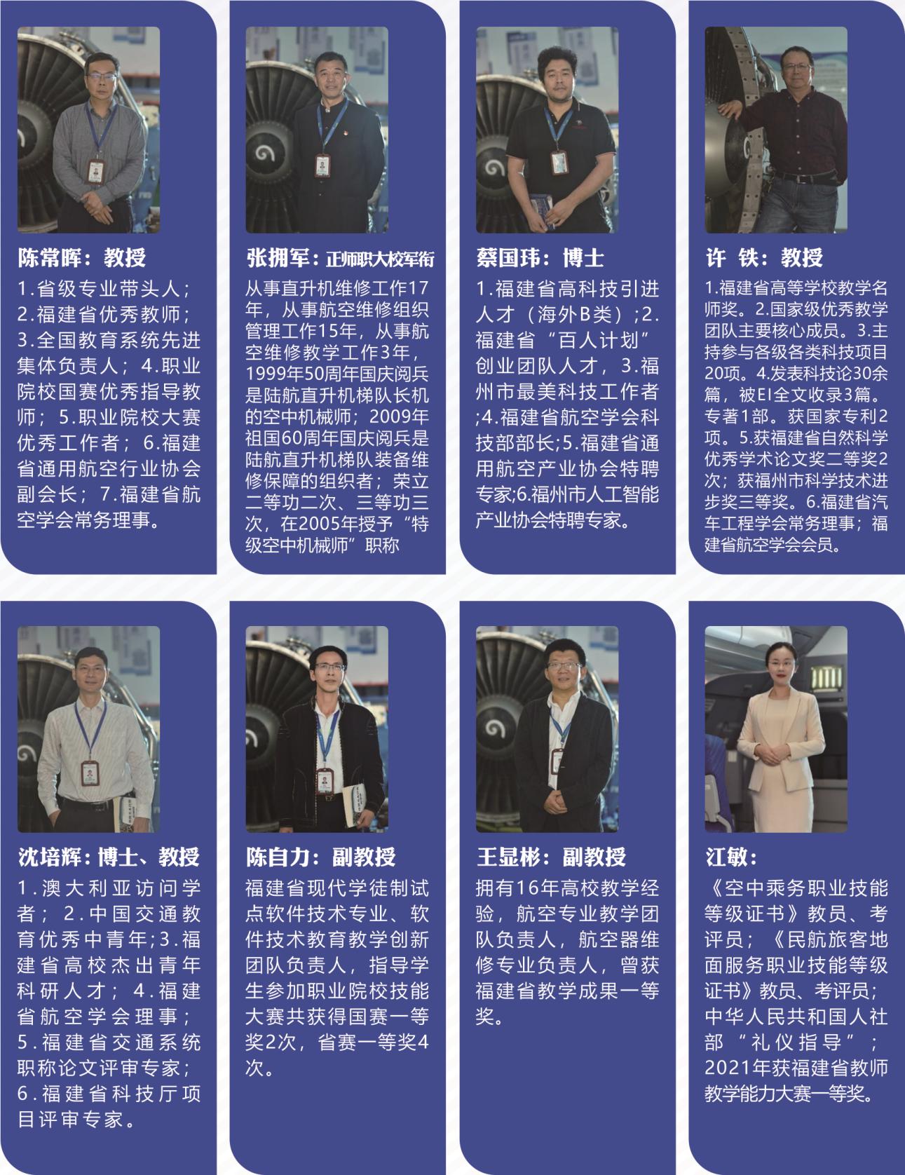 航空专业群教师团队共有专兼职教师35名,其中博士2名,教授3名,省级B类人才1名,省级名师1名。