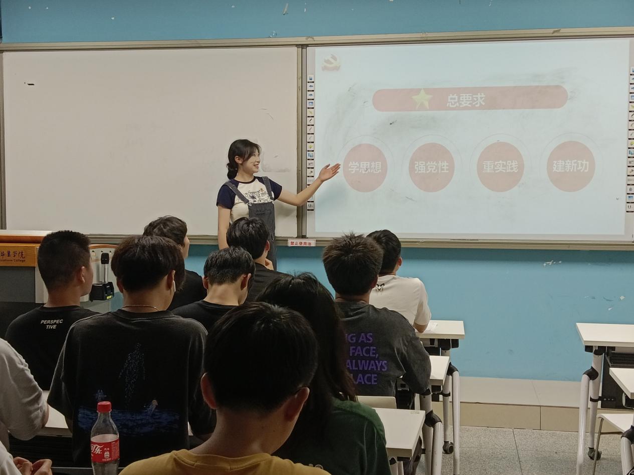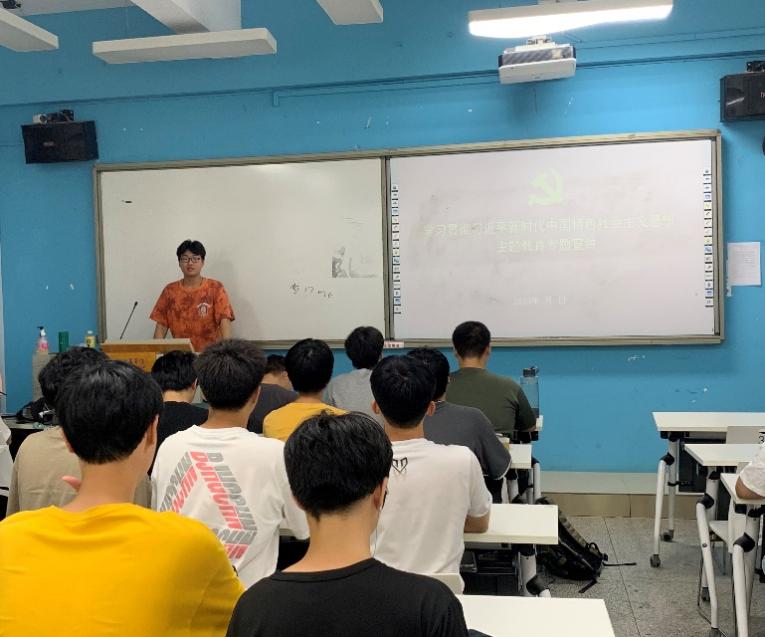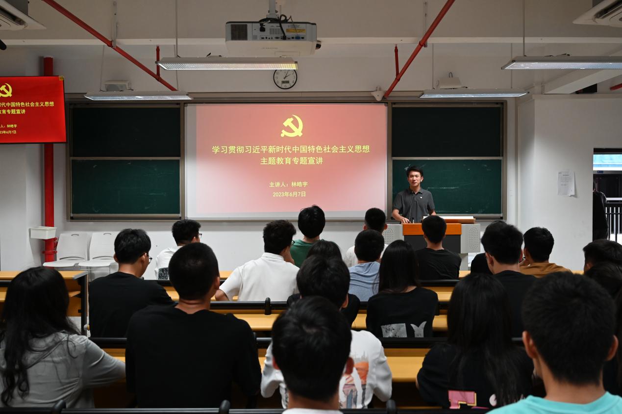 青马学员林皓宇6月7日在创新楼605教室开展学习贯彻习近平新时代中国特色社会主义思想主题教育宣讲。