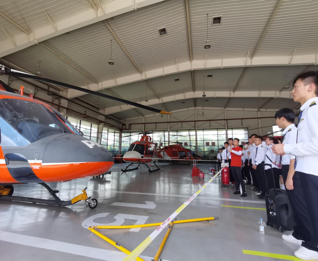 活动开始前,通用航空航务技术专业的同学们被分成四小队,按照计划安排到不同地点进行现场学习。第一站,教员带领同学们来到机场的跑道上。停机位上停着一架型号为B-70UY的森林防护机,讲解员为同学们讲解这架直升机的市场股价,功能,日常维护,主要用途是开展森林防火巡逻,对山区等偏远地区与人烟稀少地区的热点、火点进行快速甄别。一旦发生森林火灾,巡查人员可乘坐直升机实现空中观察,对火场位置、火势大小、地表植被情况和扑救路线进行科学研判。运用直升机开展森林防火巡查,是我省探索航空救援力量在森林防火工作的具体实践,对提高森林防火应急和处置能力具有重要意义。