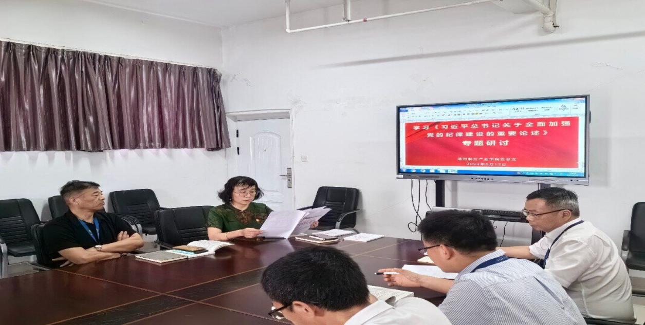 6月12日下午,学院党总支理论学习中心组举行集中学习暨党纪学习教育集中研讨,认真学习领会习近平总书记关于全面加强党的纪律建设的重要论述,更加全面地理解和执行党的纪律,推动党纪学习教育走深走实。学院党总支副书记苏汉美主持学习,学院党政班子成员、全体党员参加会议。