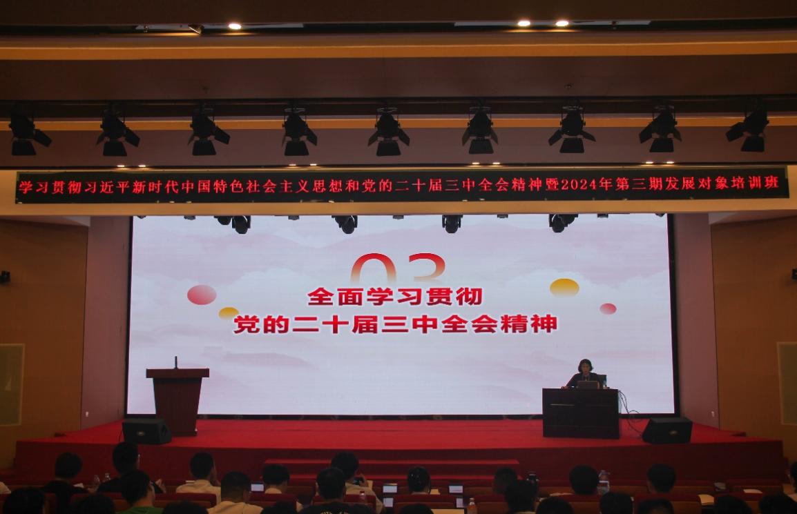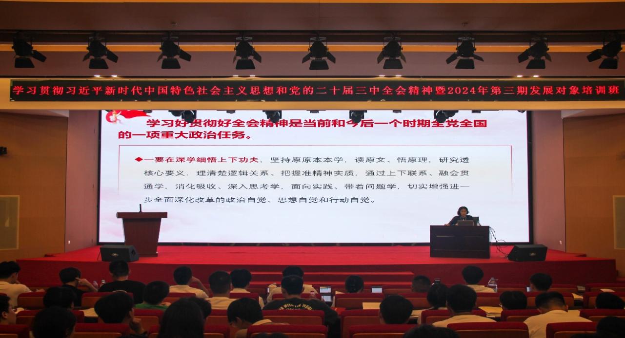 为深入学习贯彻党的二十届三中全会精神,进一步加强青年思想政治引领,引导广大青年在学思践悟中凝聚奋进力量,通用航空产业学院党总支于2024年9月4日下午在艺新楼331学术厅开展学习贯彻党的二十届三中全会精神宣讲会,会议由通用航空产业学院党总支副书记苏汉美主讲,学院第三期130余名党员发展对象参会。