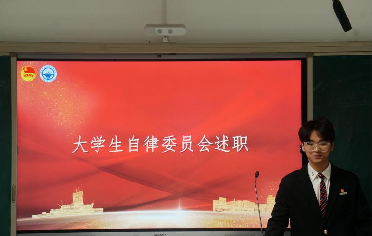 会议现场,气氛庄重而热烈。各部门干部依次上台,通过精心准备的PPT和沉稳自信的演讲,将过去一学期的工作成果一一呈现。