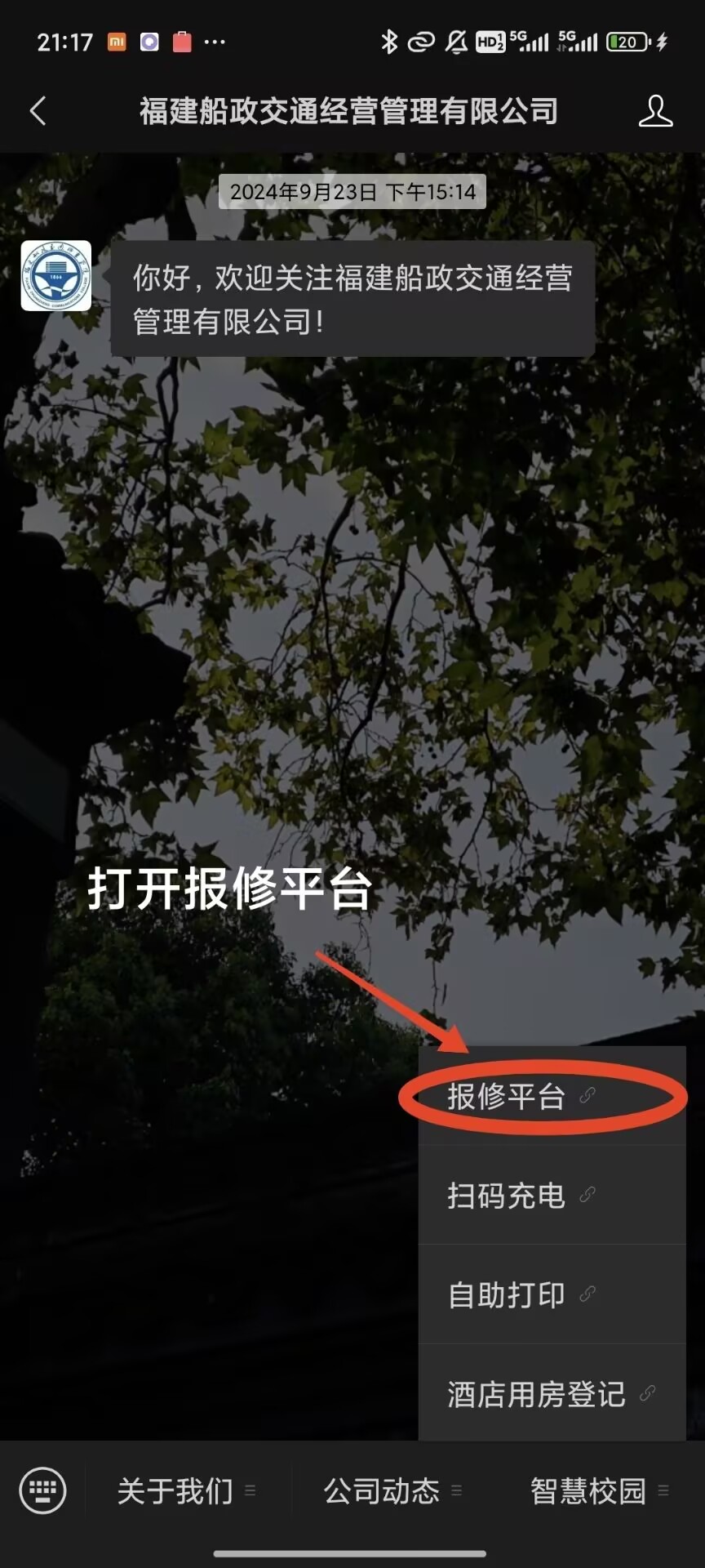 二、报修流程:福建船政交通经营管理公司公众号