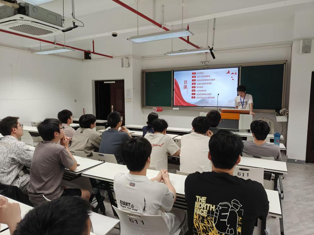 为更广泛的宣传征兵政策,召集同学响应国家征兵号召,学院还利用毕业返校,特别开展针对毕业生的征兵政策宣讲,通过多维度对征兵政策的讲解,毕业班的同学们表示入伍不仅是一次人生选择,更是一场自我超越,为祖国的国防事业贡献力量,让青春在绿色军营中焕发出别样的光彩!