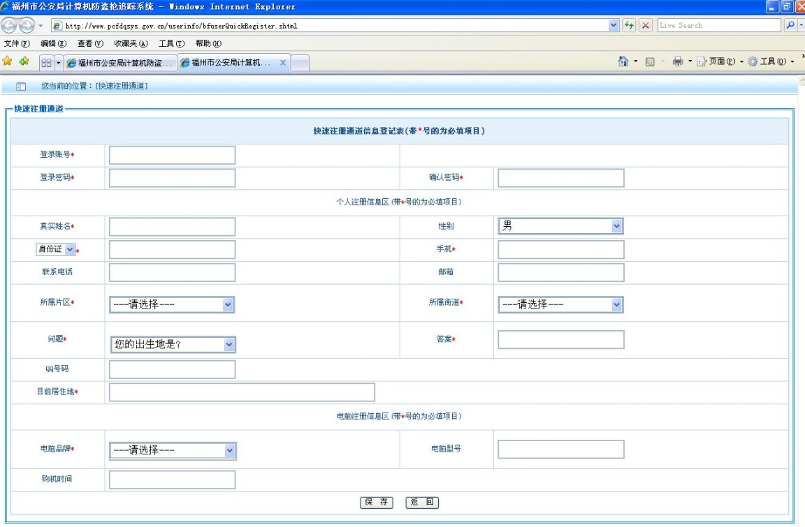 打开浏览器在地址栏内输入:http://www.pcfdqsys.gov.cn/