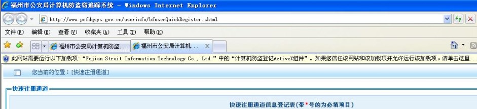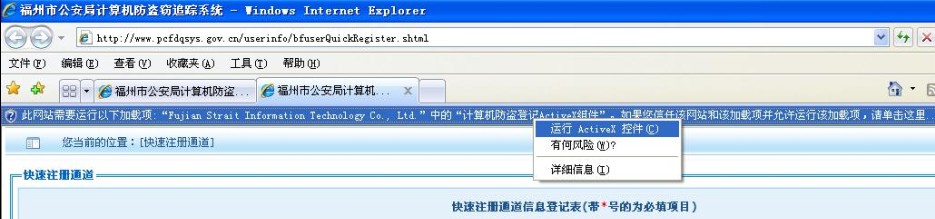 第二步:客户组件安装完成后,系统自动跳转至机主快速注册页面,若是IE6内核版本的浏览器,则页面不出现加载项,直接跳至第五步,若是IE6以上内核版本的浏览器则如下图所示: