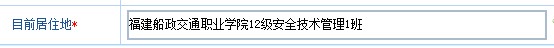 特别提示:学生请在登记页面的目前居住地栏填写“福建船政交通职业学院+完整的班级年段信息”范例如下.