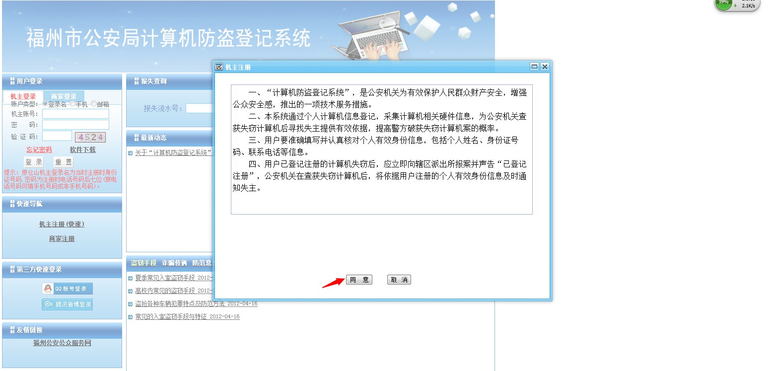 第五步:若当前电脑还未登记,则进入机主注册页面,请填写机主注册信息:
