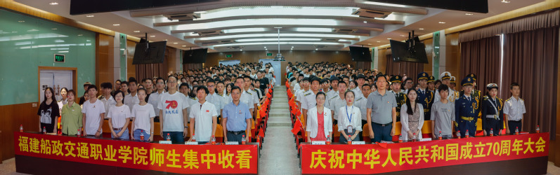 上午10时,千余名师生在5个分会场集中收看了庆祝中华人民共和国70周年大会、阅兵式和群众游行活动。师生们为伟大祖国的繁荣富强感到自豪与骄傲,会场掌声不断。