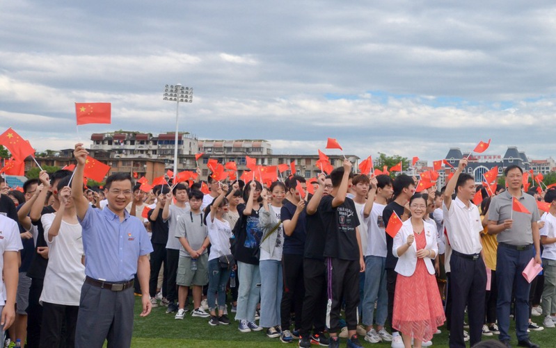 10月1日上午,我院举行隆重活动,庆祝新中国成立70周年。学院党委副书记陈宜大,党委委员、副院长陈艳红及学院有关部门领导、在校千余名师生代表在田径场参加了庄严的升旗仪式。全体师生齐唱《国歌》,并在国旗下放声歌唱《我和我的祖国》。升旗仪式后,陈宜大副书记、陈艳红副院长等教师代表,在307会议室与22名2019级新生代表亲切座谈,并为祖国庆生。