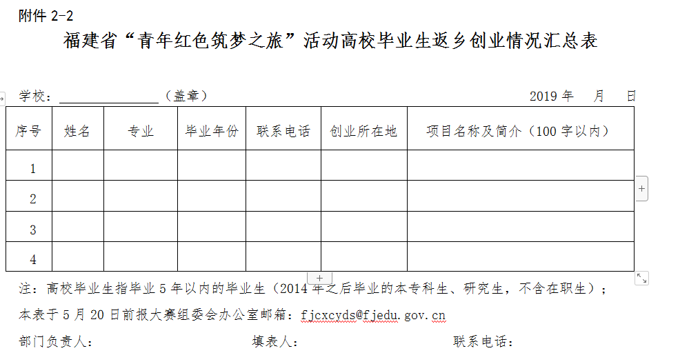 2-2.福建省“青年红色筑梦之旅”活动高校毕业生返乡创业情况汇总表