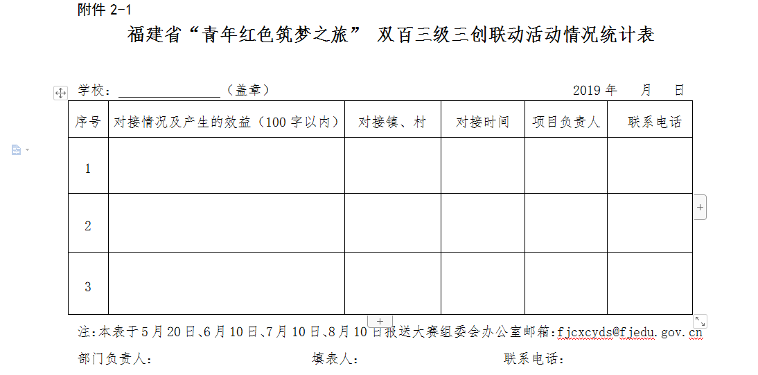 附件:2-1.福建省“青年红色筑梦之旅” 双百三级三创联动活动情况统计表