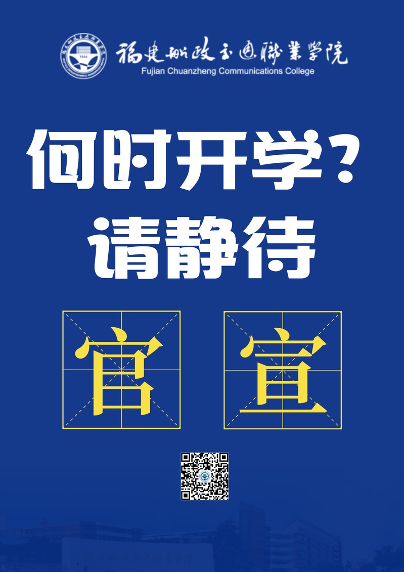 根据福建省委教育工委、省教育厅“在疫情得到有效控制前学生不返校、学校不开学”的要求,学院将科学评估开学条件,审慎研判开学时间,并提前一周通过福建船政交通职业学院官网(网址://www.ascendresearchcorp.com/)和官方微信公众号公布。