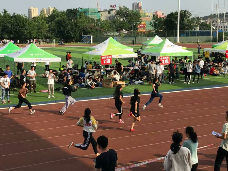 在运动会体育部的有序组织下,各项比赛有条不紊地展开。学生分为男女组进行参赛,比赛项目有100米、200米、400米、800米、1500米、3000米、跳高、跳远、三级跳远、铅球等,多个项目以不俗的成绩决出了冠亚季军。4X100米接力、4X400米接力将比赛的竞技性和合作性相结合,一度将运动会现场气氛推向高潮。