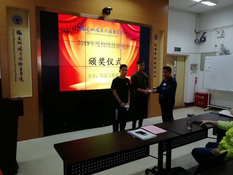 本次比赛共进行云计算&&信息安全—LINUX系统管理技术、VR虚拟现实建模技术、平面设计技术、Python程序设计与应用、移动互联应用开发、软件测试等6个赛项的角逐,参与学生达到130人,最终有10位同学获得了一等奖。10月31日下午,信息工程系孙基书记,黄金凤主任,以及本次比赛奖品赞助商优创课堂的张钦华总经理,系部各赛项的指导老师和同学参加了颁奖仪式。