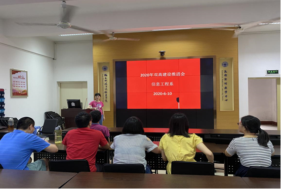 为有效落实学院创建中国特色高水平高职学校和专业建设工程(以下简称“双高”),确保各“双高”项目有效、快速、高质量完成,信息工程系于2020年4月成立“双高”建设领导小组,负责全面落实本系“双高”项目的建设推进工作。我系在以高度的使命感做好疫情防控的同时,充分利用信息化手段,多次召开视频会议,统筹安排疫情防控期间“双高”建设方案与任务书,分配任务并下发各教研室。
