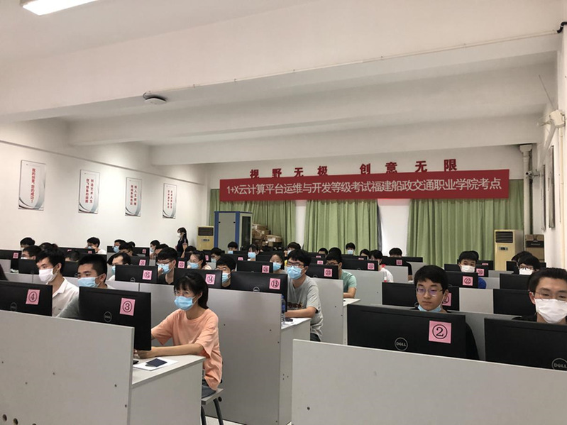 2020年7月4日星期六下午,福建船政交通职业学院信息工程系首批“1+X云计算平台运维与开发”证书中级考试,在北区2号楼606机房举行,18级信息工程系计算机网络技术专业共有50名学生,克服天气炎热、考试过程时间(14:00-18:00)超长等困难完成本次考试任务。