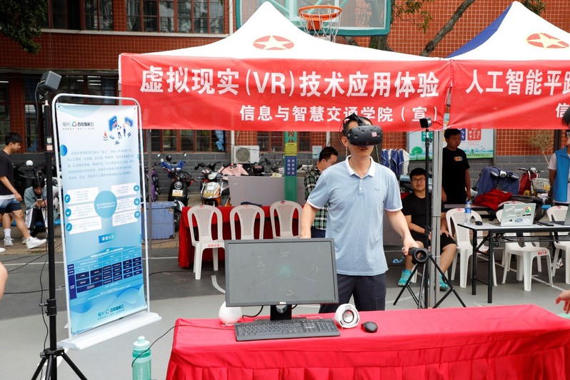 VR是近年来出现的高新虚拟现实科技技术,也称灵境技术或人工环境。虚拟现实是利用电脑模拟产生一个三维空间的虚拟世界,让参与活动的同学们分别从视觉、听觉、触觉等感官进行模拟,可以在虚拟环境中获得真实体验,还能充分发挥想象力,根据个人意愿,创造现实世界中某些不存在的物体,从第三人称视角切换第一人称视角让他们如同身历其境。